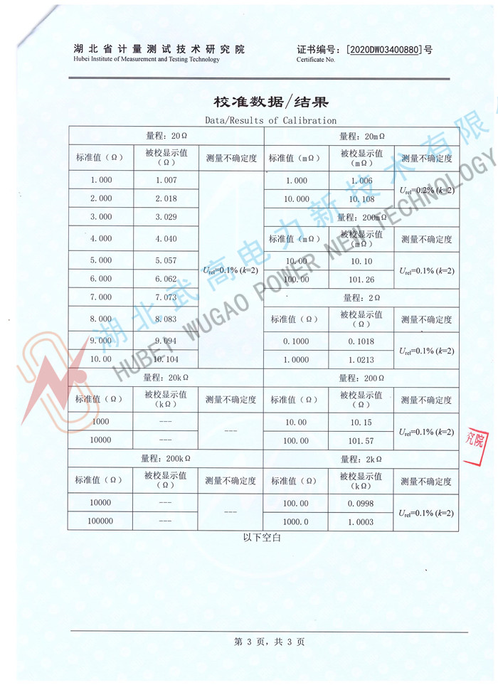 分辨率最小可達0.1μΩ;測試范圍500μΩ~。