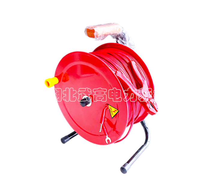 儀器附帶兩根測(cè)試線,一根紅色50米的線在線盤(pán)上,在大的叉子接在紅色接線柱I+,小的叉子接在紅色接線柱U+,一根黑色5米的線上大的叉子接在黑色接線柱I-,小的叉子接在黑色接線柱U-。