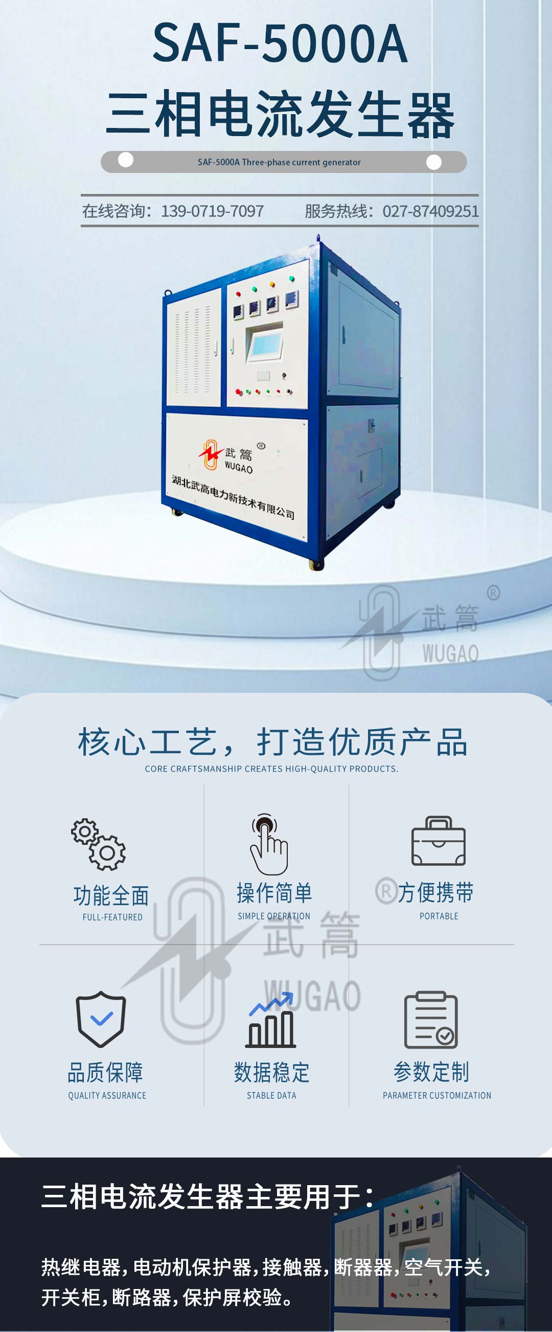 SAF-5000A三相電流發(fā)生器(簡稱三相升流器),我公司自行研制開發(fā)的測試設備,它集國內(nèi)外同類產(chǎn)品的優(yōu)點于一身,采用數(shù)控技術,抗干擾能力強,和上一代升流器相比,由于采用低功耗、大容量的自藕調(diào)壓器和高導磁率鐵芯制作的變流器,具有輸出功率大,體積小,重量輕等優(yōu)點。主要用于熱繼電器,電動機保護器,接觸器,斷器器,空氣開關,開關柜,斷路器,保護屏校驗。